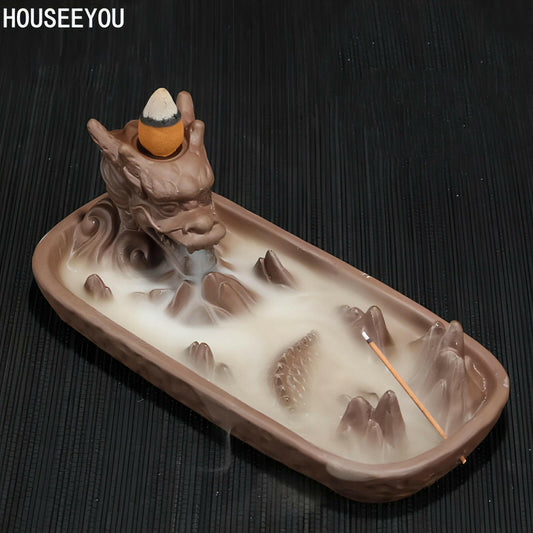 Ceramic Dragon Censer Home Decor Creative Smoke Backflow Incense Burner Incense Stick Holder